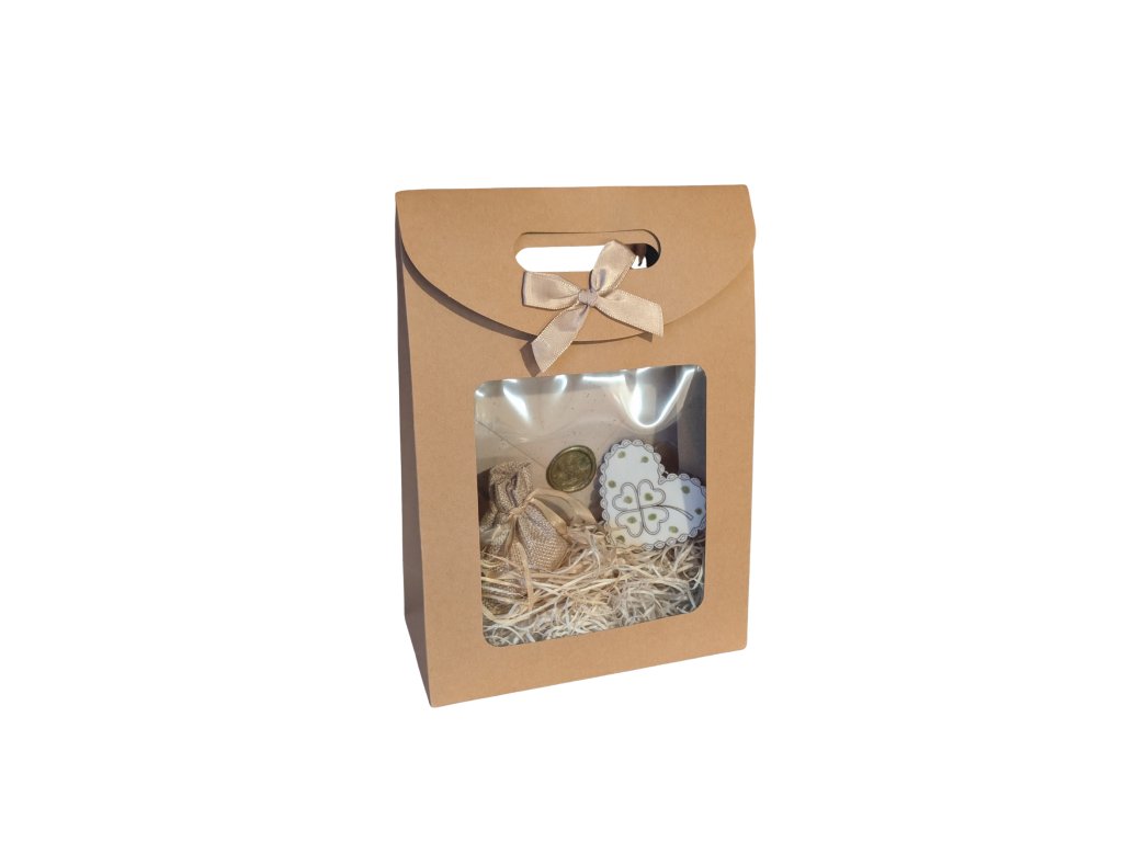 Dárkovou krabičku s dřevitou slámou – pečlivě zabalené, připravené k předání